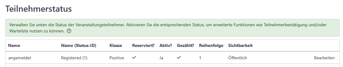Ja, das funktioniert für die Anmeldung, bringt aber leider die Bearbeitung der Teilnehmer-Statuus durcheinander, weil die angemeldeten nicht mehr angezeigt werden: