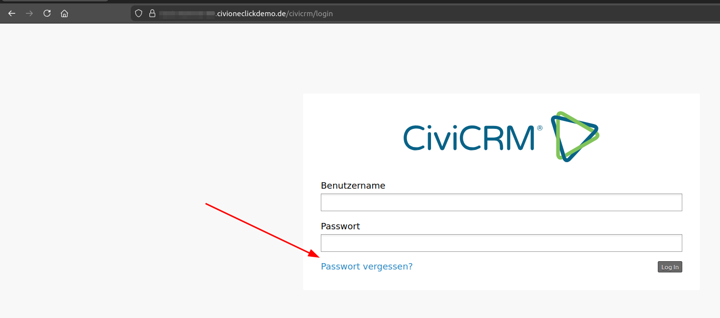 Um sich auf der Demoinstanz mit einem eigenen Passwort einzuloggen, müssen sich neue Benutzer·innen per E-Mail einen Passwort-Reset-Link schicken lassen.