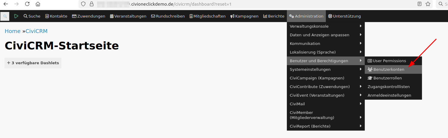 Um CiviCRM richtig zu testen, möchtest du aber vielleicht auch andere Benutzerkonten anlegen, mit anderen Rollen. Und das geht so:
