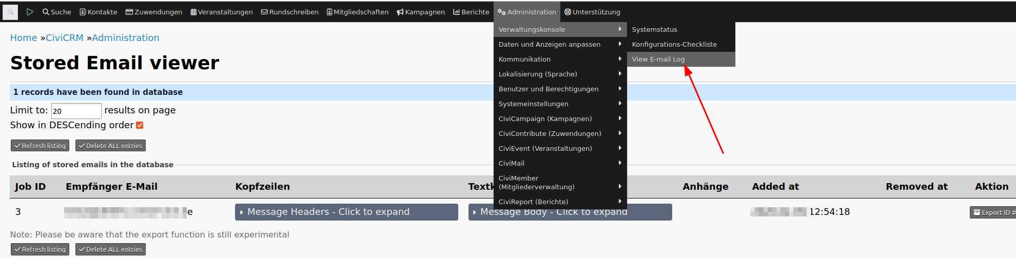 Danach kannst du die E-Mails im CiviCRM-Backend ansehen: